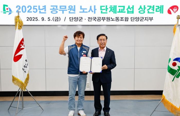 한방통신사 권영분기자 기자 | 단양군과 전국공무원노동조합 충북지역본부 단양군지부가 지난 5일 군청 소회의실에서 김문근 단양군수와 주재길 지부장 등 노·사 양측 교섭위원이 참석한 가운데 2025년 단체교섭 추진을 위한 상견례를 가졌다.