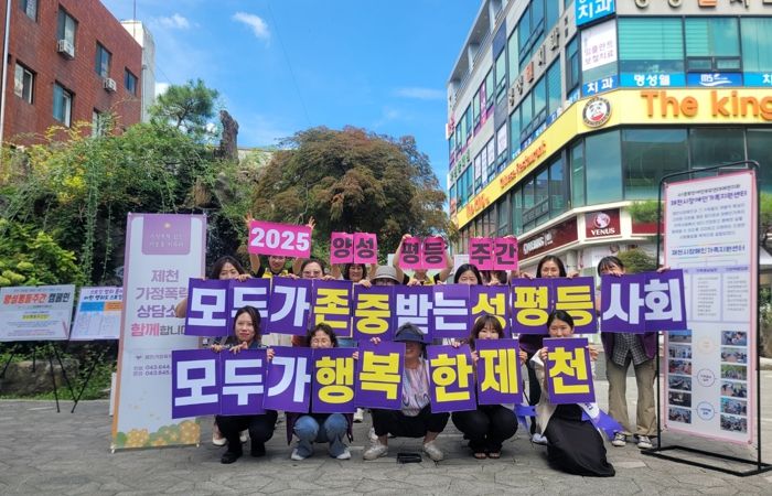 한방통신사 권영분기자 기자 | 제천가정폭력상담소는 지난 3일 문화의 거리에서 양성평등주간(매년 9월 첫째 주)을 맞이해‘모두가 존중받는 성평등 사회 모두가 행복한 제천’을 주제로 캠페인을 진행했다. 캠페인에는 협력 기관인 제천경찰서를 비롯해 제천시여성시민참여단, 제천시장애인가족지원센터, 제천엘림의집 등 다양한 단체가 참여했다.