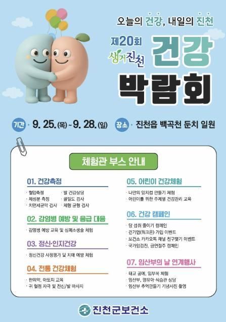 윤희선 군 건강증진과 주무관은 “20년간 이어온 생거진천 건강박람회는 진천군 대표 건강축제로, 지역사회 건강증진 문화 확산에 중요한 역할을 해왔다”며 “올해도 다양한 프로그램을 마련한 만큼 군민 여러분의 많은 관심과 참여를 부탁드린다”고 말했다.