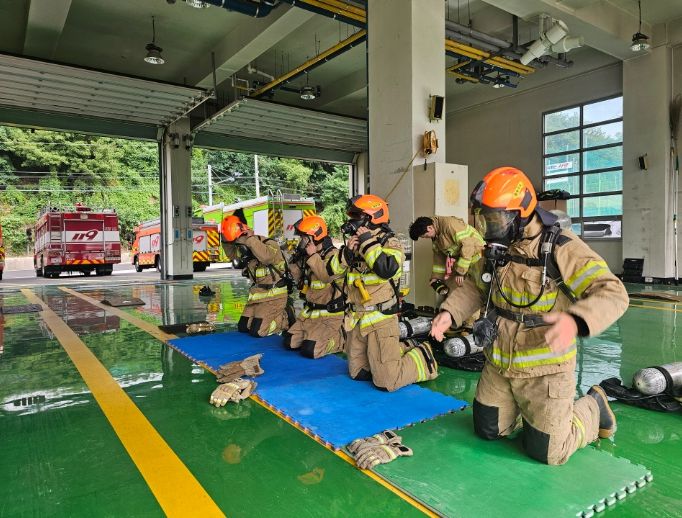 이번 평가는 소방 표준작전절차(SOP), 무선통신약어 등 이론평가와 공기호흡기 장착 및 비상호흡법, 로프매듭 기구 묶기 등 실기 평가를 실시해 현장대원들의 기술과 응용능력을 종합적으로 평가했다.