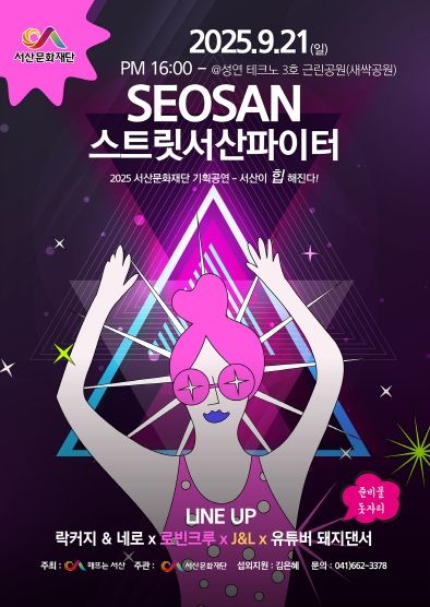 서산문화재단 임진번 대표이사는 “이번 공연은 어린이부터 성인까지 세대와 장르를 넘어 모두가 즐길 수 있는 스트리트 댄스 축제”라며 “공연과 관객 참여 프로그램을 통해 시민들에게 생동감 있는 문화 경험을 선사하겠다”고 말했다.