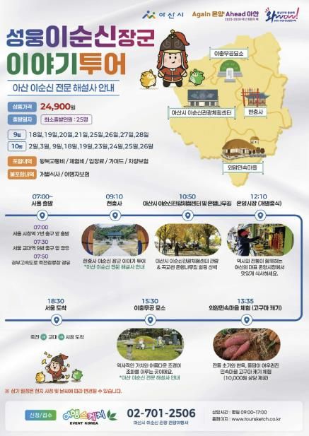 맹희정 아산시 관광진흥과장은 “이번 이순신전담여행사 선정을 통해 이순신 장군의 정신과 업적을 체감할 수 있는 품격 있는 관광상품을 마련했다”며 “역사와 문화, 휴양이 어우러진 아산만의 관광 콘텐츠로 발전시켜 나가겠다”고 말했다.