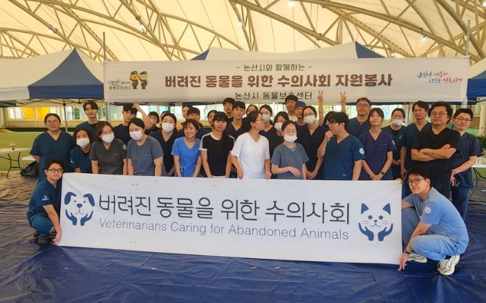 이날 봉사에는 전국 각지에서 모인 수의사 30명과 자원봉사자 20여 명이 참여했으며, 충남대·전북대 등 동물복지동아리 ‘소복소복’, 충남대 수의대 동물복지동아리 ‘VEVO’도 동참했다.
