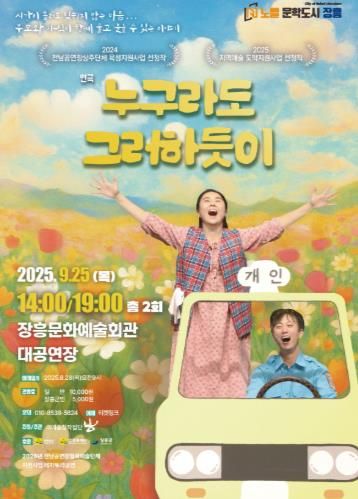 연극 누구라도 그러하듯이 공연은 전라남도문화재단 공모사업에 선정되어 추진하는 창작공연이다.
