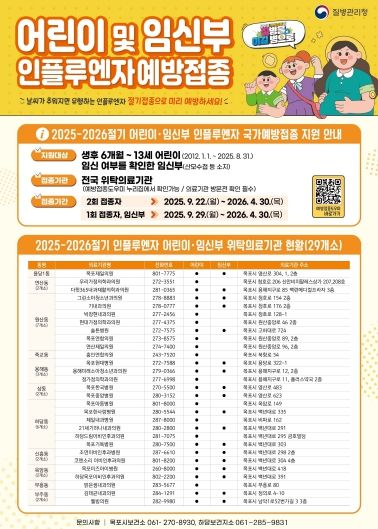 한방통신사 신다은기자 기자 | 목포시는 오는 9월 22일부터 ‘2025-2026절기 인플루엔자(독감) 무료 예방접종’을 시작한다.