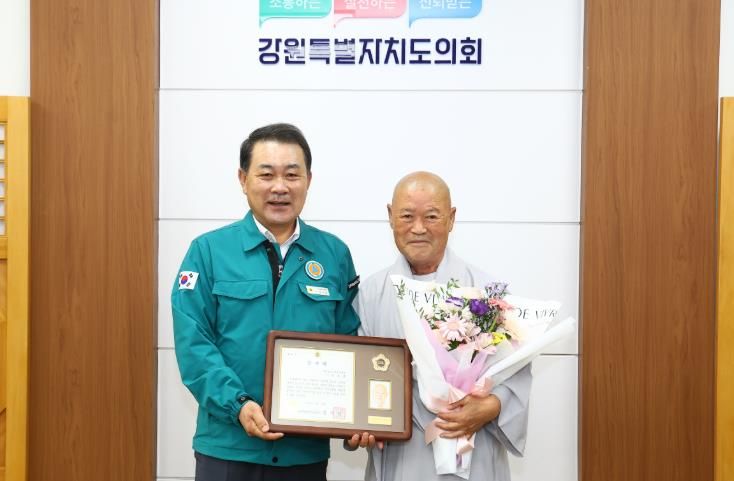 한방통신사 신유철기자 기자 | 강원특별자치도의회는 9월 18일, 강원특별자치도의회에서 지역사회 봉사와 종교․문화 발전에 기여한 공로로 원주지역의 현각스님(원주 성불원 주지)에게 감사패를 전달했다.
