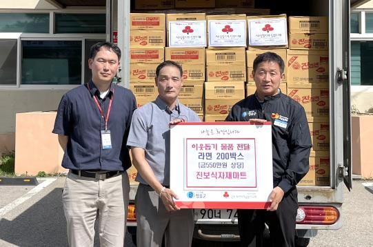 한방통신사 신유철기자 기자 | 청송군은 지난 17일 추석 명절을 앞두고 진보면 소재 진보식자재마트(대표 박건)에서 550만 원 상당의 라면 200상자를 진보면에 기탁받았다고 밝혔다.