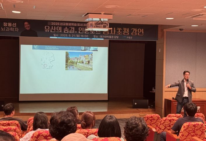 한방통신사 신유철기자 기자 | 고령군은 9월 21일 대가야박물관 강당에서 ‘2025 신규평생학습도시 지정사업’의 일환으로 진행되는 '유산의 숨결, 인문로드 명사초청 강연'첫번째 일정으로 장동선 박사(뇌과학자)를 초청하여 “뇌과학과 미래사회”를 주제로 특별강연을 개최했다.