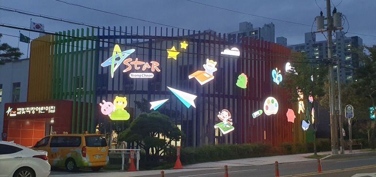 외벽은 다채로운 색감과 귀여운 캐릭터 디자인으로 꾸며져 낮에는 동화 같은 즐거움을, 밤에는 LED 조명으로 별빛처럼 반짝이는 따뜻한 분위기를 연출한다.