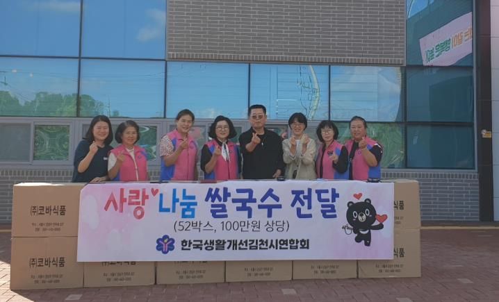 한방통신사 신유철기자 기자 | 한국생활개선김천시연합회는 지난 9월 23일 한국뇌병변장애인인권협회 경북협회 김천시지회를 방문하여 100만 원 상당의 쌀국수 52상자를 전달했다.