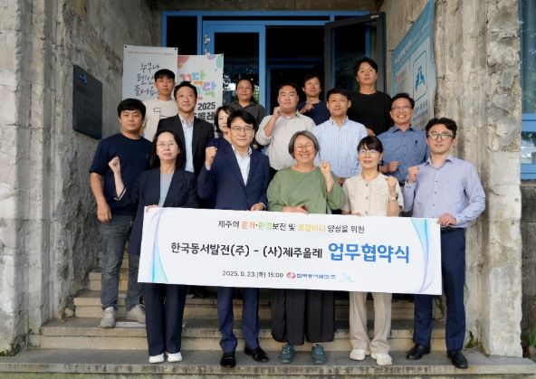 한방통신사 신유철기자 기자 | 한국동서발전㈜(사장 권명호) 제주사업추진단과 (사)제주올레(대표이사 안은주)는 23일 15시 서귀포 제주올레여행자센터에서 ‘제주의 문화·자연환경 보전 및 지역인재 양성을 위한 업무협약’을 체결했다.