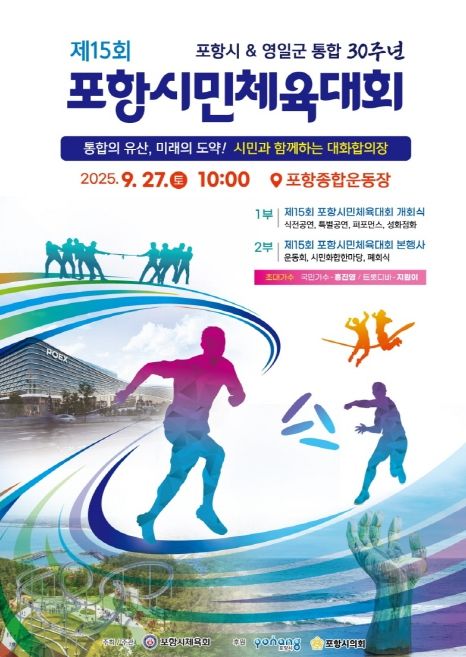 포항시체육회 관계자는 “올해 시민체육대회는 통합 30년의 발자취를 돌아보고 미래 30년의 도약을 시민과 함께 다짐하는 자리”라며 “모든 시민이 어울려 화합과 감동을 나누는 축제가 될 수 있도록 대회 준비에 최선을 다하겠다”고 말했다.