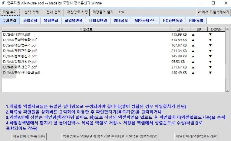 주요 기능은 ▲한글·엑셀·워드·PDF 문서의 원하는 순서로 병합 ▲MP3·MP4 구간 추출 및 합치기 ▲파일명·이미지 형식·크기 일괄 변경 ▲PC 화면 녹화 ▲영어 학습 지원 ▲음성↔텍스트 변환 ▲PDF 특정 페이지 추출 등이다.