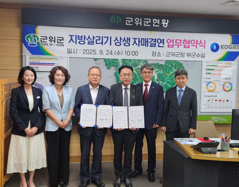 한방통신사 신유철기자 기자 | 군위군과 한국가스공사(사장 최연혜)는 9월 24일 수요일 오전 10시 군위군청 부군수실에서 지방살리기 상생 자매결연 업무협약을 체결했다. 지방살리기 상생 자매결연 업무협약은 비수도권 인구감소지역의 경제 활성화와 인구 유입을 위해 중앙정부와 공공기관, 지자체가 협력하는 공식 협약이다.