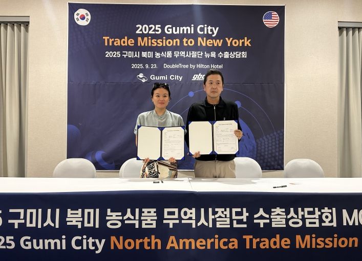 한방통신사 신유철기자 기자 | 구미시가 9월 22일부터 28일까지 미국 뉴욕과 캐나다 벤쿠버에 ‘2025 구미 농식품(G-Food) 시장개척단’을 파견하고‘G-Food’의 글로벌 시장 진출을 본격화했다.