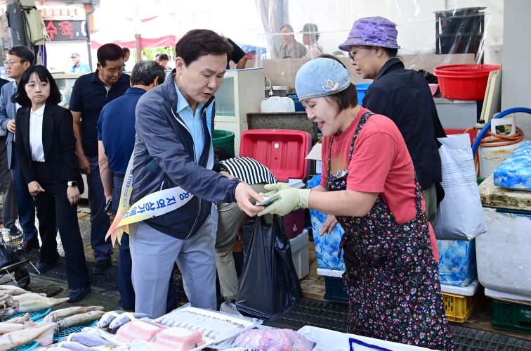 이번 행사는 장기화되는 고물가 및 저성장 추세, 소비심리 위축으로 장기간 어려움을 겪고 있는 전통시장 및 지역상가의 활성화는 물론, 지역 경기 회복을 도모하고자 추진됐다. 장보기 행사를 통한 소비 촉진 및 지역상권에서 체감하는 효능감을 높이기 위해 공직자와 기관․단체 임직원이 앞장서 온누리상품권 2,600여 만원을 구입, 제수용품과 생필품을 구매하는 등 지역상가에 실질적인 도움이 될 것으로 기대된다.