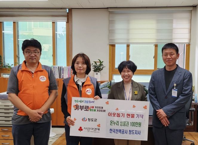 한국전력공사 청도지사는 매년 이웃돕기 성금 기탁 및 사회복지시설에 후원 물품 전달 등 지역사회를 위해 정기적인 나눔을 실천하고 있으며, 이 날 기탁된 온누리 상품권은 청도군을 통해 저소득층 및 취약계층에 전달될 예정이다.