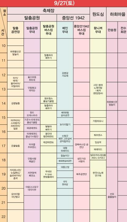 탈춤공원 분수광장과 버스킹 무대에서는 지역 청소년과 예술인, 동아리들이 참여하는 자유참가 공연이 펼쳐진다.