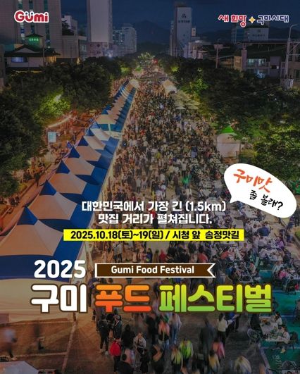 김장호 구미시장은 “풍성한 콘텐츠와 다채로운 즐길 거리로 구미의 맛을 전국에 알리겠다”며 “끝까지 세심한 준비로 미식가들의 입맛을 사로 잡을 수 있도록 하겠으니 많은 분들이 오셔서 가을의 맛 기행을 구미에서 즐기시길 바란다”고 말했다.