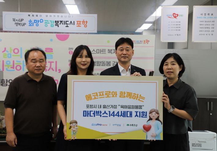 포항시 관계자는 “결연아동 후원, 주거환경 개선, 환경 캠페인 등 다양한 사회공헌 활동을 꾸준히 실천해 온 에코프로에 감사드린다”며 “시는 저출산 시대에 아이 낳고 키우기 좋은 환경을 조성하기 위해 지원을 강화하겠다”고 밝혔다.