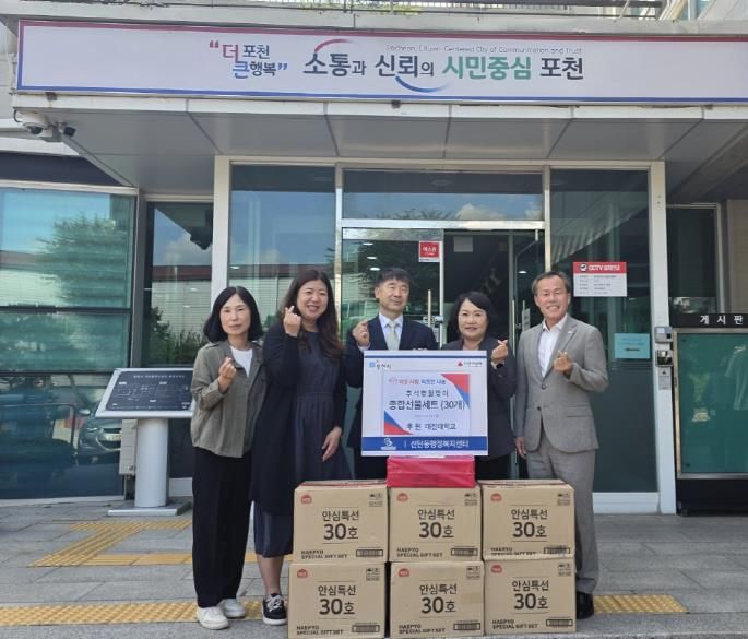 이번 기부는 대진대학교가 지난해부터 이어오고 있는 지속적인 지역사회 공헌 활동의 하나로, 명절을 외롭고 힘겹게 보내는 이웃들에게 따뜻한 정과 희망을 전하고자 마련됐다.
