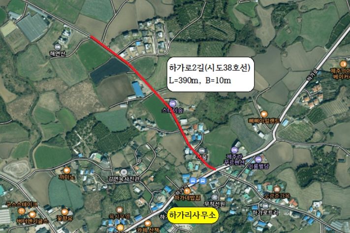 한방통신사 신유철기자 기자 | 제주시는 애월읍 하가리 시도 38호선(L=390m, B=10m) 구간에 대한 도로 확·포장 공사를 마무리하고 9월 준공했다.
