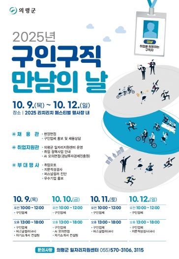 한방통신사 신유철기자 기자 | 의령군은 내달 9일부터 12일까지 나흘간 진행되는 제4회 리치리치 페스티벌기간 내 ‘2025 구인·구직 만남의 날’을 개최한다고 1일 밝혔다.