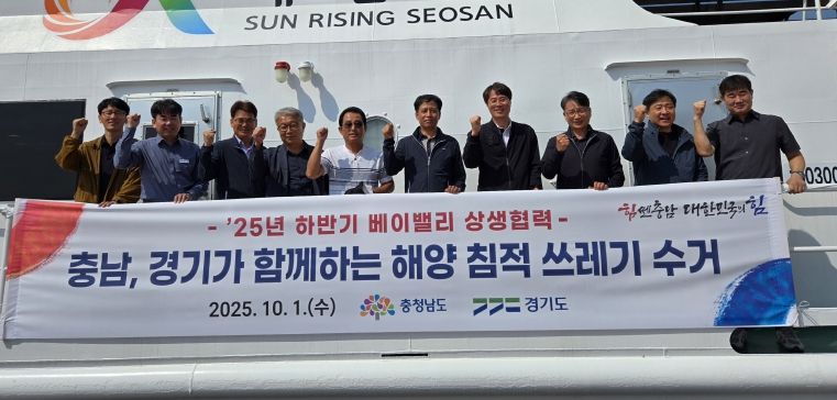 이번 공동 수거 활동은 2022년 9월 ‘베이밸리 건설을 위한 충남-경기 상생 협력 업무협약’ 체결 이후 4번째로, 전상욱 도 해양수산국장, 박종민 경기도 농수산생명과학국장, 늘푸른충남호와 경기청정호 직원 등 40여 명이 참여했다.