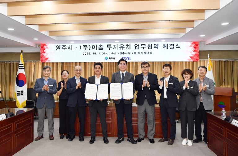 한방통신사 양호선기자 기자 | 원주시는 10월 1일 오후 2시, 시청 7층 투자상담실에서 ㈜이솔(대표 김병국)과 투자유치 협약(MOU)을 체결했다. 이번 협약은 총 505억 원 규모의 투자로, 부론일반산업단지에 소형 방사광가속기와 첨단 EUV 반도체 검사장비 연구·생산시설을 구축하는 사업이다. EUV(Extreme Ultra-Violet)는 반도체 초미세 공정(7nm 이하)에 필수적인 광원이다.