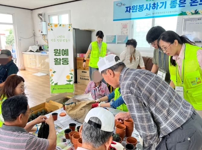 한방통신사 신유철기자 기자 | 제주특별자치도사회서비스원은 지난 9월 30일, 성산읍 신풍리경로당에서 어르신들과 함께하는 원예 자원봉사 활동을 실시했다.