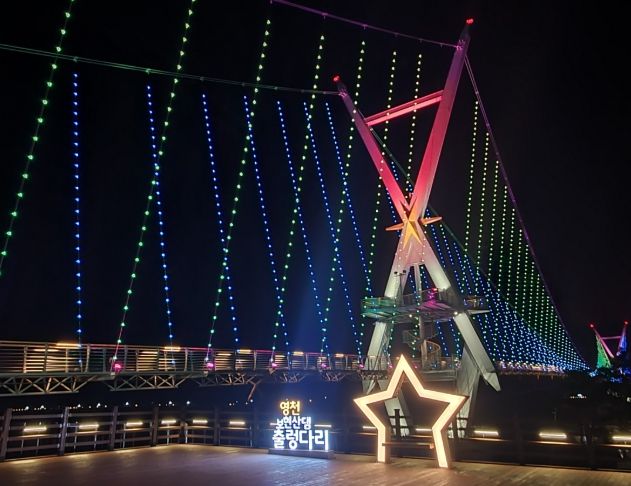 특히, 추석 연휴와 보현산별빛축제 기간(10월 17~18일)에는 출렁다리를 야간 개방해 은은한 조명 아래서 걷는 특별한 경험을 제공하고, 가족, 연인, 친구와 방문한 관광객들에게 잊지 못할 추억을 선사할 것으로 기대된다.