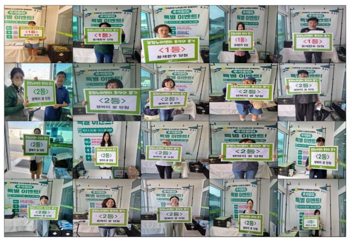 행사 기간 로컬푸드 직매장에서 2만 원 이상 구매한 고객 500여 명에게는 지역 농·축·수산물 및 가공품으로 구성된 경품을 증정하는 ‘꽝 없는 추억의 뽑기’ 이벤트가 열렸다.