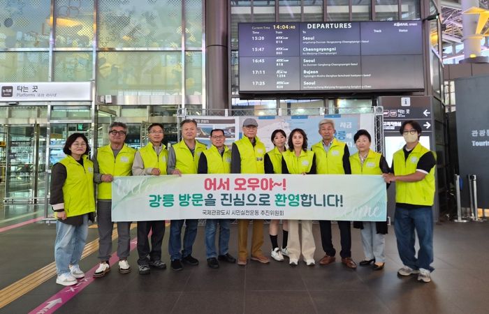 한방통신사 양호선기자 기자 | 국제관광도시 시민실천운동 추진위원회 친절분과 소속 30여 명은 지난 11일 강릉역에서 전국 제일의 친절한 도시 강릉 조성을 위하여 관광객 환영 캠페인을 추진했다.