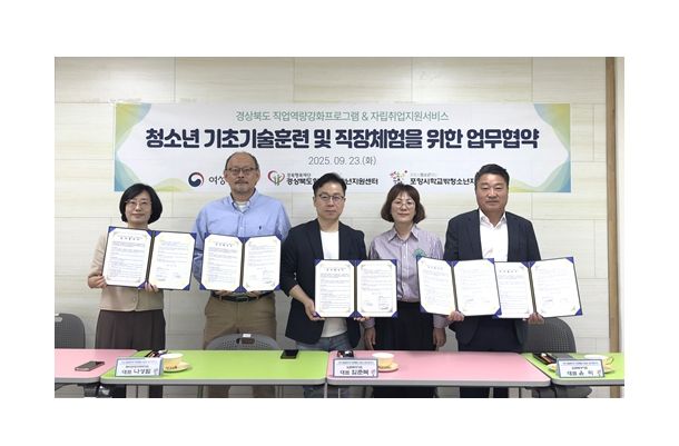 한방통신사 신유철기자 기자 | 포항시청소년재단 포항시학교밖청소년지원센터는 최근 학교 밖 청소년의 기초기술훈련과 직장체험 기회 확대를 위해 지역 사업장 2곳과 업무협약을 체결했다고 밝혔다.