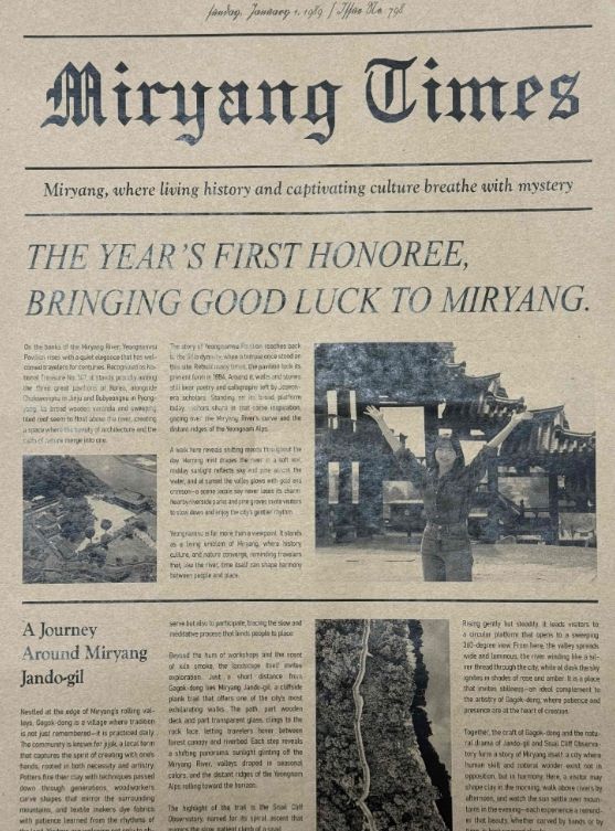 이경숙 관광진흥과장은 “신문 속 주인공이 되는 특별한 경험을 통해 관광객이 밀양의 매력을 새롭게 느끼고, 다시 방문하고 싶은 도시로 기억되길 바란다”라고 말했다.