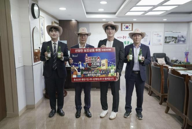 한방통신사 신태공 기자 | 홍성군은 지난 13일, 홍성군청 군수실에서 ㈜선양소주와 ‘2025 홍성글로벌바비큐페스티벌’ 홍보라벨 소주 전달식을 실시했다고 밝혔다.