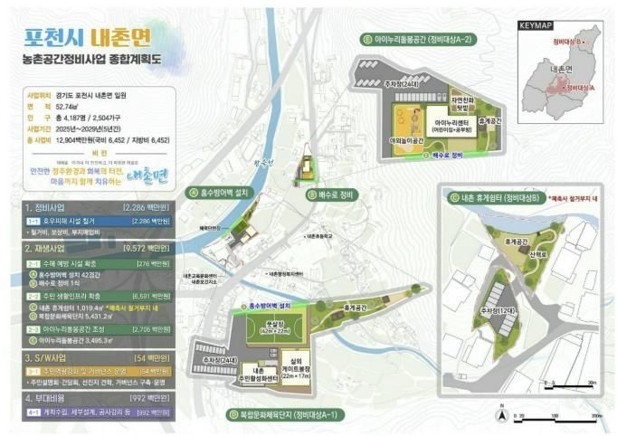 한방통신사 신유철기자 기자 | 포천시가 농림축산식품부가 추진한 ‘2025년 농촌공간정비 추가공모사업’에 선정되어, 2029년까지 내촌면 일원에서 추진할 공간정비사업 예산 129억 원을 확보했다.