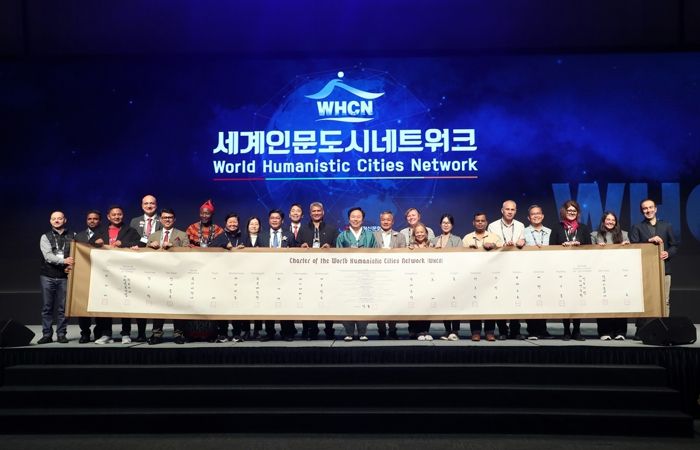 6일 오후 열린 WHCN 총회는 국악 취타대의 웅장한 연주 속에 각국 대표단이 입장하며 개막했다. ‘인문가치로 여는 협력과 연대의 길’을 주제로 진행된 총회에서는, 회원 도시 대표들이 헌장이 인쇄된 대형 족자에 도장을 날인하는 퍼포먼스를 통해 도시 간 인문적 연대와 협력 의지를 상징적으로 선언했다.