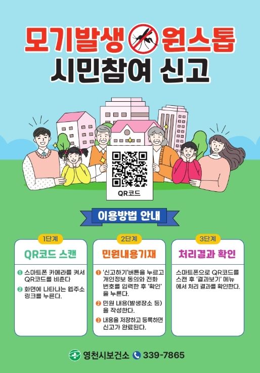 한방통신사 신유철기자 기자 | 영천시보건소는 QR코드를 활용한 ‘모기발생 원스톱 시민참여 신고’ 시스템을 시범 운영한다고 10일 밝혔다.