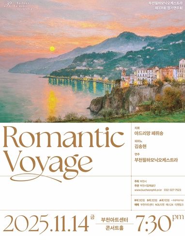 한방통신사 신유철기자 기자 | 부천필하모닉오케스트라가 오는 11월 14일 오후 7시 30분 부천아트센터 콘서트홀에서 제331회 정기연주회 'Romantic Voyage'를 개최한다. 공연에는 상임지휘자 아드리앙 페뤼숑과 부천필이 무대에 오르며, 협연자로는 탁월한 음악적 이해력과 구성력으로 호평받는 피아니스트 김송현이 ‘낭만적 여정’에 함께 오른다.