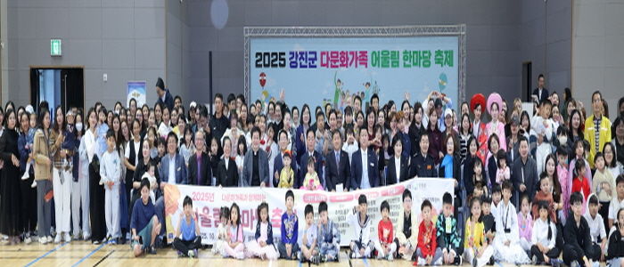 한방통신사 신다은기자 기자 | 강진군이 지난달 25일 강진국민생활체육센터 제2실내체육관에서 ‘2025 강진군 다문화가족 어울림 한마당 축제’를 다문화가족과 이주노동자, 유학생 등 400여 명이 참여한 가운데 성황리에 마무리했다. 이번 행사는 강진군이 주최하고 강진군가족센터(센터장 조미아)가 주관했으며, 다양한 문화가 어우러지는 지역사회의 화합과 교류의 장으로 마련됐다.