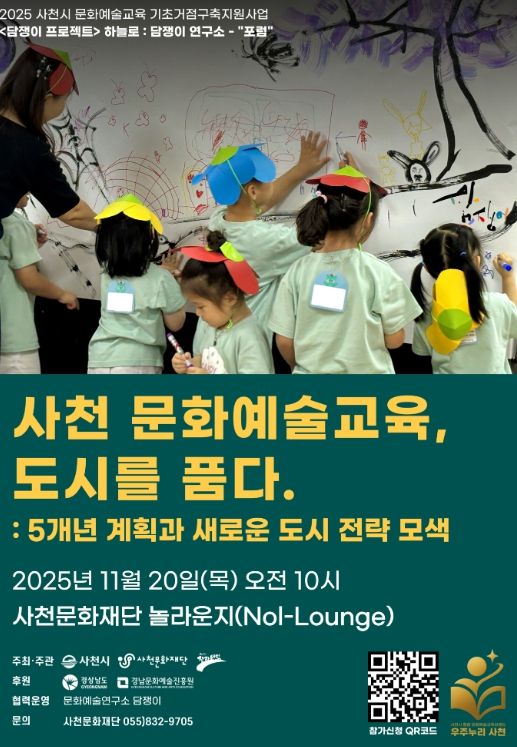 이번 포럼은 경상남도와 경남문화예술진흥원이 후원하는 2025 지역문화예술교육 기초거점구축 지원사업에 선정되어 추진되는 사천시 문화예술교육 기초거점 구축 지원사업 『담쟁이 프로젝트』의 일환으로 진행된다.