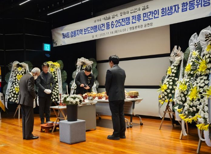 한방통신사 권영분기자 기자 | 충북 영동군은 18일 오후 심천면 영동문학관에서 ‘영동지역 보도연맹사건 등 6·25전쟁 전후 민간인희생자 합동위령제’를 개최했다.
