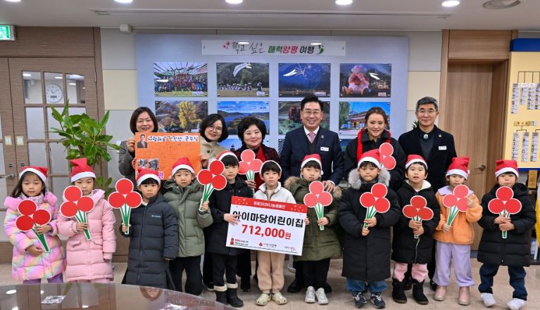 이날 전달식에는 7세반 원아 12명이 함께 참석해 작은 손으로 성금 봉투를 전달하며 따뜻한 분위기를 더했다. 이번 기탁금은 지난 11월 진행된 바자회에서 원아와 학부모가 함께 참여해 마련한 수익금으로, 그 의미가 더욱 깊다.