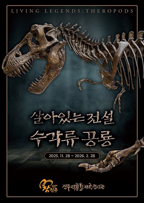 진주익룡발자국전시관은 백악기 최강 포식자인 티라노사우루스를 실측 복원한 대형 미디어 영상과 진주시 정촌면에서 발굴된 실제 수각류 공룡 발자국을 한자리에서 감상할 수 있는 하반기 기획전 ‘살아있는 전설, 수각류 공룡’을 지난달 28일 개막했다.