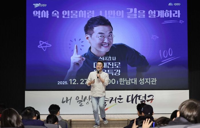 한방통신사 신태공 기자 | 대전 대덕구는 지난 27일 한남대학교 성지관에서 한국사 스타강사 최태성 씨를 초청해 ‘미래진로 교육특강’을 성황리에 마무리했다.