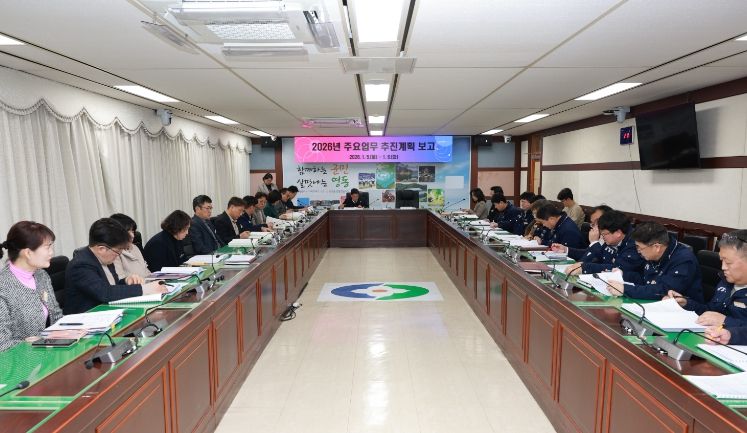 군은 지난 5~6일 이틀간 군청 상황실에서 정영철 군수 주재로 주요 현안사업의 중단 없는 추진과 지역 성장 동력 확보를 위한 ‘2026년도 주요업무 추진계획 보고회’를 개최했다.