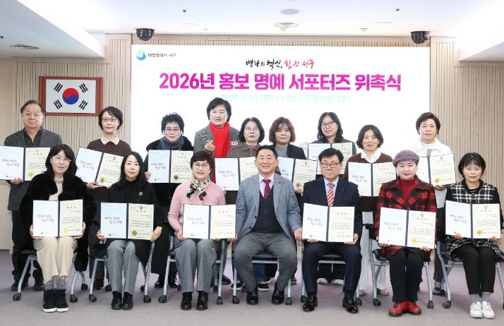 한방통신사 신태공 기자 | 대전 서구는 12일 구청 장태산실에서 ‘2026년 대전 서구 홍보 명예 서포터즈 위촉식’을 개최했다.