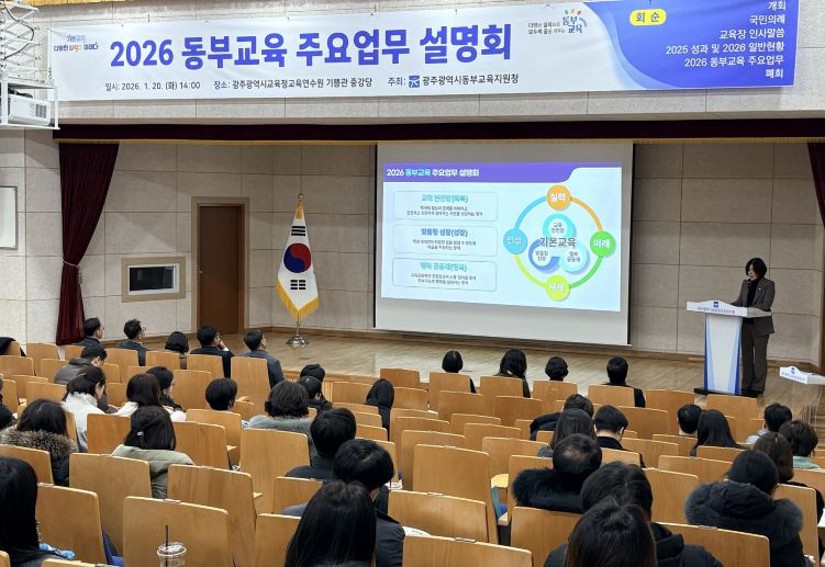 한방통신사 김성의 기자 | 광주동부교육지원청은 20일 광주시교육청교육연수원 중강당에서 ‘2026년 동부교육 설명회’를 개최했다.