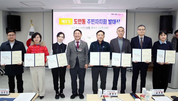 도안동 주민자치회는 21일 저녁 동 청사에서 위촉장 수여와 비전선언문 낭독 등의 순으로 행사를 진행했다. 위촉된 위원은 총 50명으로, 앞으로 2년간 환경·복지·문화·교육 등 다양한 분야에서 지역 현안을 발굴하고 마을 발전을 위한 활동을 펼칠 예정이다.